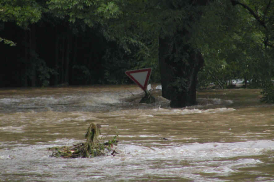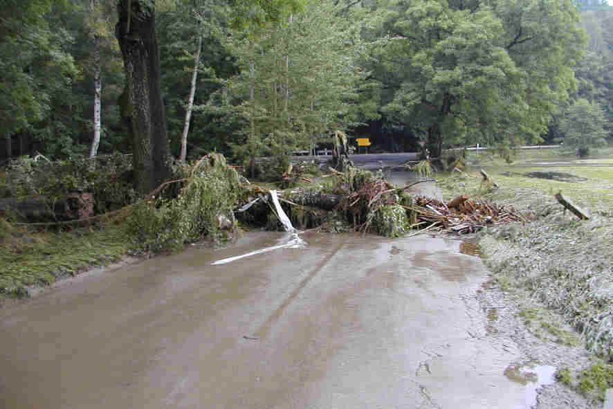 Das ganze Chemnitztal ab Stadt Chemnitz bis zum Ort Markersdorf war ein hundert Meter breiter See, der aber mit viel Wucht alle losen Sachen mit sich riss und viele Bäume unterspülte und mitschwimmen liess. Viele Brücken und Strassen waren unpassierbar. |